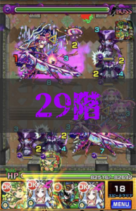 27階「凍てつく無限回廊」。此処は反射貫通両方を編成しないとかなり苦戦を強いられ、一度ボタンを掛け違えただけでも道中のぷに・かち処理が本当にややこしい事になりました。