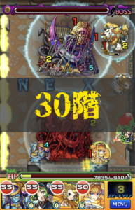 30階「封印の破壊神 序」。これをクリアすればオーブ50個、ということで血眼になって攻略してましたね。超絶2週目のキャラが中ボスとして揃い踏みだったことも話題になりました。